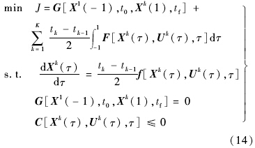 设Xk(τ)和Uk(τ)为第k个区间上的状态和控制变量,则连续时间Bolza问题转化为以下形式: