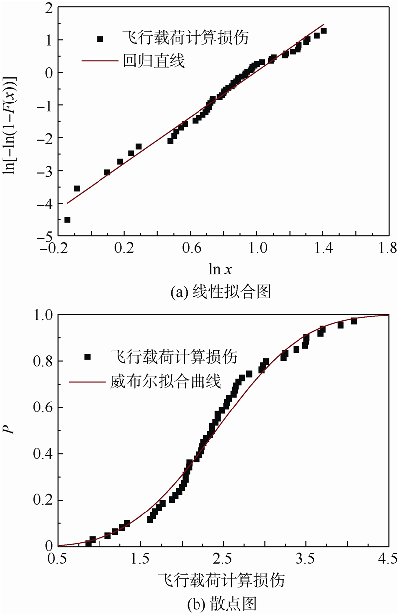 | 图 3 飞行载荷损伤威布尔分布Fig. 3 Weibull distribution of flight load damage |