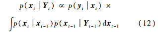 目标跟踪问题可以看成是运动目标的状态推断问题.在贝叶斯理论的框架下,利用状态的先验概率和观测量,构造状态的后验概率密度: