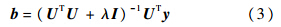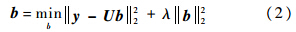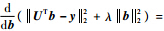 L2范数约束项的作用有2个:①它使解b具有一定的稀疏度,但是L2范数的稀疏度远低于L1范数的稀疏度.②它使得最小化的解更加稳定.L2范数最小化很容易求解,令||UTb-y||22+λ||b||22的导数为0,即