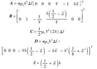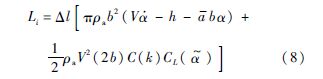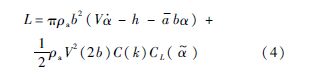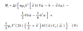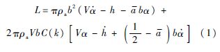 根据Theodorsen非定常气动力理论,二元翼段以频率ω作简谐振动时,单位展长上的升力L(向上为正)和对刚心的俯仰力矩M(抬头为正)分别为[9]