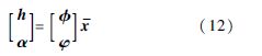 根据模态叠加法,所有片条上的沉浮位移h=[h1h2…hi…hn]T(i=1,2,…,n)和俯仰角α=[α1α2…αi…αn]T(i=1,2,…,n)可表达为