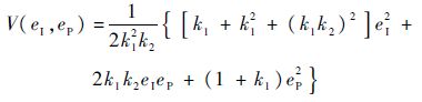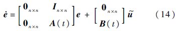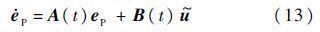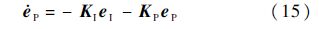 记e=[eI eP]T,由式(12)和式(13)构成新的跟踪误差动态方程,写成矩阵形式: