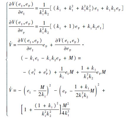 沿闭环系统轨线求函数V(eI,eP)的导数,有