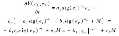 式中:sig(y)a=|y|asgn(y),a>0,如果a0、a1、b0、b1>0、m和n均为大于0的奇数,且m <n,那么系统式(17)在原点是渐近稳定的,即满足 z1=0及