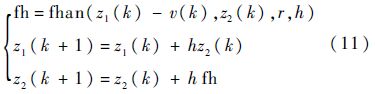 式中:fhan(z1(k)-v(k),z2(k),r,h)[16]为二阶最速离散跟踪微分器输入;h为积分步长;跟踪微分器的输出z1(k)即为安排的过渡过程信号;z2(k)为过渡信号z1(k)的微分信号.