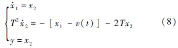,这里不失一般性,令一阶惯性环节的时间常数为T,则指令信号v(t)至 的传递函数为