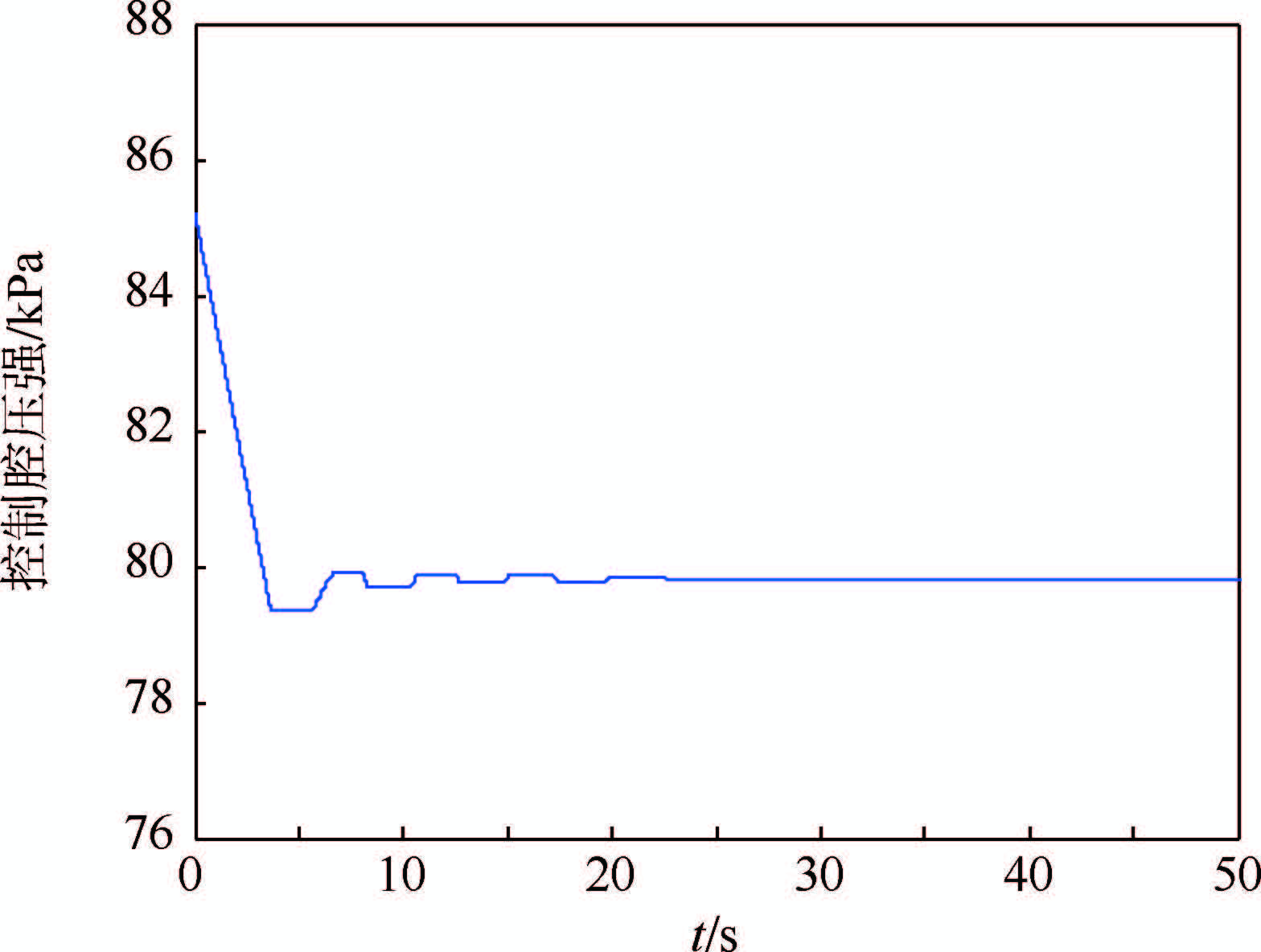 | 图 11 kD=4.19N/cm时排气活门控制腔内压力的全物理仿真结果 Fig. 11 Result of full-physical simulation for pressure in control chamber of outflow valve when kD=4.19N/cm |