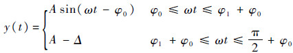 正弦输入信号x(t)=Asin(ωt)(A>Δ,ω为信号角频率)作用下,气动放大器的输出波形如图 4所示,其输出y(t)的数学表达式为