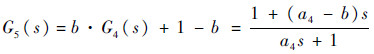 该案例中,在座舱压力调节系统的所有工作范围内,由于a4=5.31±0.18,b值的变化范围在0.04~0.06之间,此时,G5(s)可以视为一个零极点对消环节。为了便于使用描述函数的方法对系统的稳定性进行分析,将系统结构进行等效变换为图 8(b)所示。