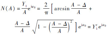 其特点描述为:当输入信号的幅值小于Δ时,气动放大器的输出为0,当输入信号的幅值大于Δ时,气动放大器的输出与输入相比发生信号滞后,滞后角为φ0=arcsin(Δ/A),并且正弦信号的波峰被削去Δ高度。