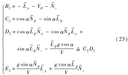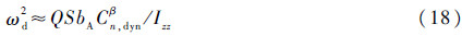 由于以上简化,使得滚转和螺旋模态的根退化为零[14],因此,式(19)中的常数项即为荷兰滚频率的平方。由此可见Cβn,dyn>0只是荷兰滚稳定的充分条件,并不能保证荷兰滚稳定。