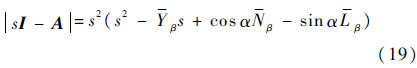 忽略阻尼力矩项以及角速率对侧力的影响,由横侧向线性模型得到横侧向特征行列式[13]: