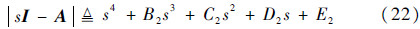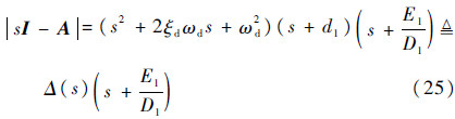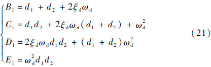 显然应有B1=B2、C1=C2、D1=D2、E1=E2。由于螺旋模态为一阶模态,且时间常数较大,特征根很小,通常情况下d2«min(d1,ωd),因此D1≌d1ω2d,并且d2≌E1/D1。然后将特征行列式写成:
