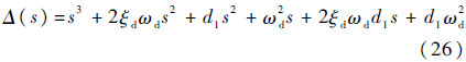 令ξd为荷兰滚模态的阻尼比,-d1和-d2分别为滚转收敛和螺旋模态的特征根,因此横侧向运动的特征行列式为