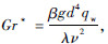 ν为运动黏度,m2/s,qw为壁面热流密度,W/m2,g为重力加速度,m/s2,λ为导热系数,W/(m·K),β为流体的热膨胀性,K-1;Re为雷诺数;Pr为普朗特数。