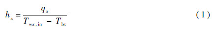 2 实验数据处理方法 2.1 管内局部对流换热系数管内局部对流换热系数通过式(1)定义: