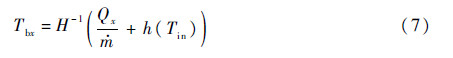 管内油温分布可根据管壁加热功率及实验测得的RP-3焓差曲线[12]推算得到。实验管x截面处流体质量平均温度计算方程式为