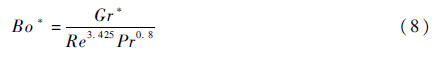 Jackson和Hall[7]分析了剪应力沿着边界层的变化,建议把因浮升力使剪应力减小10 %作为浮升力影响是否考虑的分界线,提出用Bo*数来表征浮升力对换热的影响。其表达式如下: