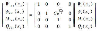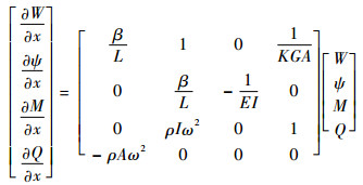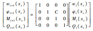 直接由式(2)~式(4)无法得到传递矩阵为常数的状态方程,因此对结构的状态变量进行替换,令