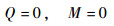 对式(2)~式(4)两端同时对时间t进行傅里叶变换,并将式(8)、式(9)代入式(2)~式(4)中并化简可以得到关于W、ψ、M和Q的状态空间方程: