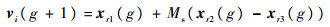 在差分进化算法中,常见的差分策略是随机选取种群中的2个不同的个体,将向量差乘以缩放因子Ms并与待变异的个体进行向量合成: