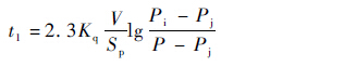 式中:Kq=1.5为机械泵抽速修正系数;V=4.148m3为真空罐容积;Sp=70L/s为名义抽速,考虑抽速在泵组内管道的损失,按2台旋片式真空泵抽速的50%计算;Pi、P分别为抽真空前、后真空罐内的压强。计算得t1=8.8min。
