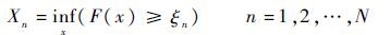 对于任意给定的分布函数F(x),直接抽样法的流程如下:首先,生成一组样本量为N的服从区间[0,1]均匀分布的伪随机数,记为ξ1,ξ2,…,ξN。然后,按照式(4)确定服从F(x)的随机序列。