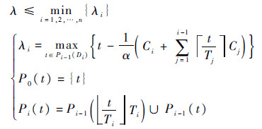式中:Di为任务τi的截止期;Ri为响应时间。