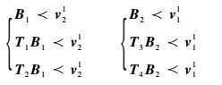 这样可保证w1和w2线性独立。要满足条件式(10),矩阵B1和B2、v12和v11分别从式(11)~式(14)对应的集合中选取。