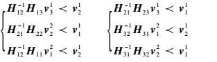 要使接收端的期望信号能被解析出来,需要期望信号与干扰信号是相互独立的,即期望信号与干扰信号构成的空间是满秩的。即证明矩阵接收端1的信号空间[H11v11H12v22H12v12]是满秩的。矩阵[H11v11H12v22H12v12]左乘H-111 得到: