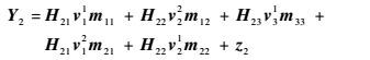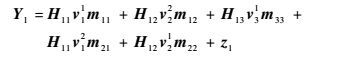 在接收端1,期望信号为m11、m12,干扰信号为m21、m22和m33,输入输出关系是
