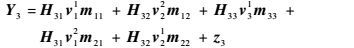 在接收端3,期望信号为m33,干扰信号为m11、m12、m21和m22,输入输出关系为