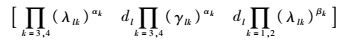2) 接下来考虑式(16)。如果λ1k、γ1k给定,同理要保证等式(16)成立的概率大于0,只需满足下列2个条件之一即可:①λ11、λ12、γ13和γ14是此方程的根;②λ11、λ12、γ13和γ14的各次项系数都等于0。