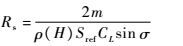 式中:Rs对应为飞行器倾斜转弯机动过程中的转弯半径;L=ρ(H)V2SrefCL/(2m),当飞行器飞行速度V≠0,则可得