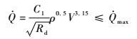 式中:Rd为飞行器端头半径;C1为与飞行器特性相关的常数;ρ为飞行高度的大气密度; $\dot{Q}$max为驻点热流密度约束值。取C1/$\sqrt{\frac{R}{d}}$=5.188×10-8。