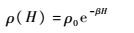式中:H为飞行高度;$\beta =\frac{1}{{{H}_{MCP}}}$,HMCP=7.11 km为大气刻度系数;ρ0=1.225 kg/m3为海拔0 km密度。