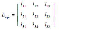 其中:i、Ω和ω分别为由地心赤道旋转坐标系向当地地心坐标系转换的轨道倾角、升交点赤经和近地幅角。
