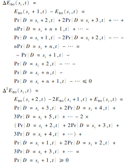 虽然EBO(si,t)不是凸函数,但只要EBO(si)是凸函数,就可以通过在算法中做出相应的改进,令优化模型按凸规划的解法求出全局最优解。下面移除时间参数并证明EBO(si,t)在固定时刻是凸函数。