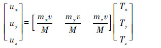 式中: M为追踪航天器质量;mx、my和mz为三轴推力器燃气质量流速;v 为推力器燃气排气速度;Tx、Ty和Tz 为三轴推力器的开关状态,有正向开、关和负向开3种,对应的取值为{1,0,-1}。