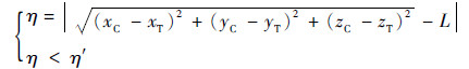 假设追踪航天器逼近非合作目标后悬停时两者间的相对距离为L,则终端位置约束为