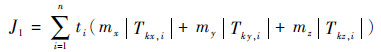 轨迹规划的适应度函数J取为J1 、 J2及J3的和,把J1 、 J2及J3采用式(9)~式(11)代替,适应度函数J 表示为