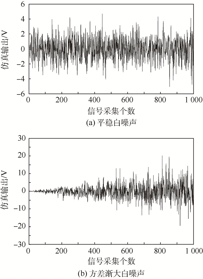 | 图 1 平稳白噪声和方差渐大白噪声 Fig. 1 Stationary white noise and white noise with gradually bigger variance |