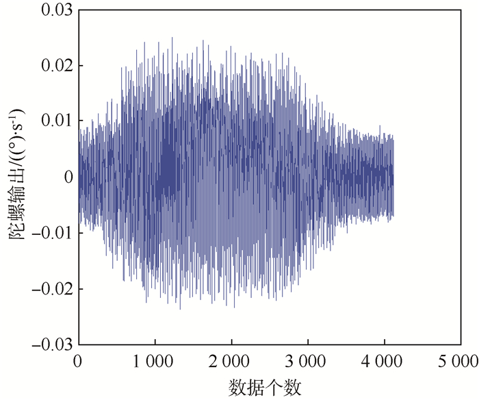 5 动态试验验证为了验证所设计的动态总方差法的有效性,本文设计了半球谐振陀螺的线振动试验。线振动的初始加速度为5 g,采用弦函数方式施加在陀螺上。陀螺数据采集的频率为10 kHz,共采集了4 200个数据。首先去除输出信号中的趋势项而得到随机信号,如图 6所示,其动态总方差法分析如图 7所示。