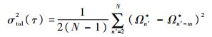 5)将窗口滑动到t2,重复步骤2)~步骤4)得到t2时刻的动态总方差值σtol2(t2, τ)和随机误差系数。以此类推,得到动态总方差法序列{σtol2(ti, τ)}(i=1, 2, …, N)和各时刻的随机误差系数。