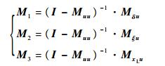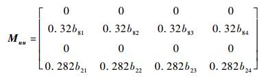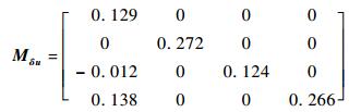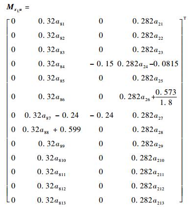 而Mδu、Mξu、MxLu和Muu分别为控制变量[θom B′1 A′1 θot]T与δ、ξ、xL和u相对应的系数矩阵。具体的矩阵形式为