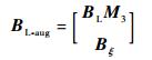 则引入控制系统后的新直升机-吊挂耦合线化模型的状态矩阵AL-aug和控制矩阵BL-aug分别为