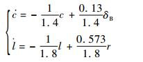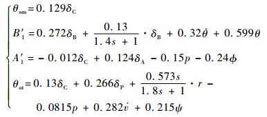 从方程式(6)可以看到,控制系统的引入使整个系统增加了两阶动态,对应的状态变量可以取为c和l,记ξ=[c l]。将其代入直升机本体小扰动线化模型的表达式,变形后可得到加了控制系统后的小扰动线化模型方程为
