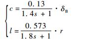 由文献[11-12]给出的控制系统模型,可以写出控制系统执行机构的主旋翼总距角、纵/横向变距角(自动倾斜器倾角)、尾旋翼总距角与系统各变量之间动态关系的频域表达式为