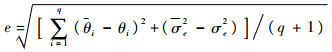2) 参数估计平均误差e,定义为n次参数估计平均值与参数真实值之差的平方平均数,即